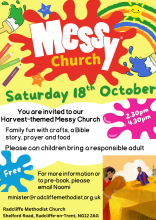 Messy ChurchSaturday, 18th of October 20252:30pmContact name:Radcliffe Methodist ChurchLocation:Radcliffe Methodist Church